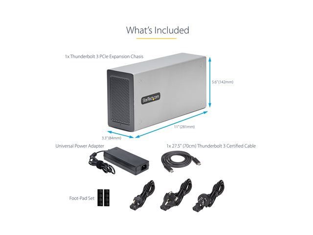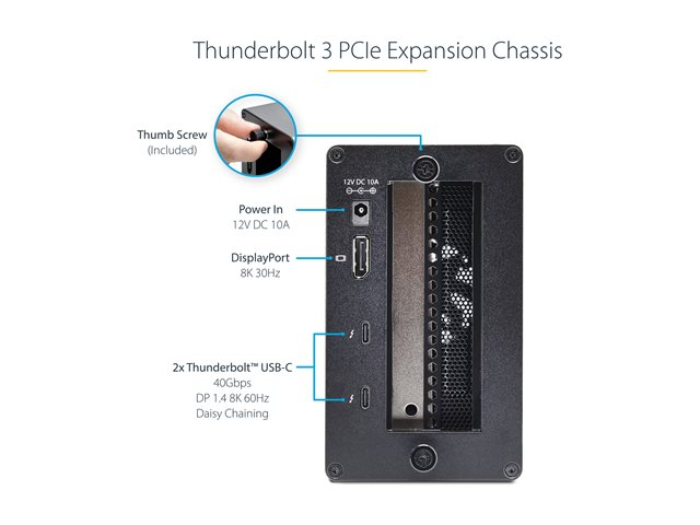 StarTech.com Thunderbolt 3 PCIe Expansion Chassis, Enclosure Box W/Dual PCI-E Slots, External PCIe Slots for Laptops/Desktops/All-In-Ones, 8K/4K Output Via TB3/DP 1.4 Ports - For PCI Express Cards (2TBT3-PCIE-ENCLOSURE) - Extension de bus système - DP - 120 Watt - Conformité TAA