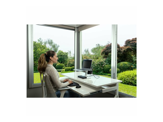 La coque extérieure de la SD4781P est composée à 73 % de matériaux recyclés post-consommation pour réduire l'impact environnemental. La station d'accueil prend en charge jusqu'à 2 écrans Ultra HD externes (4K à 60 Hz) et offre le choix entre une connexion HDMI  2.0 et DP++ 1.2. Le câble USB-C peut être verrouillé dans la station afin d'être sûr qu'il reste toujours en place même dans le cas de bureaux partagés.