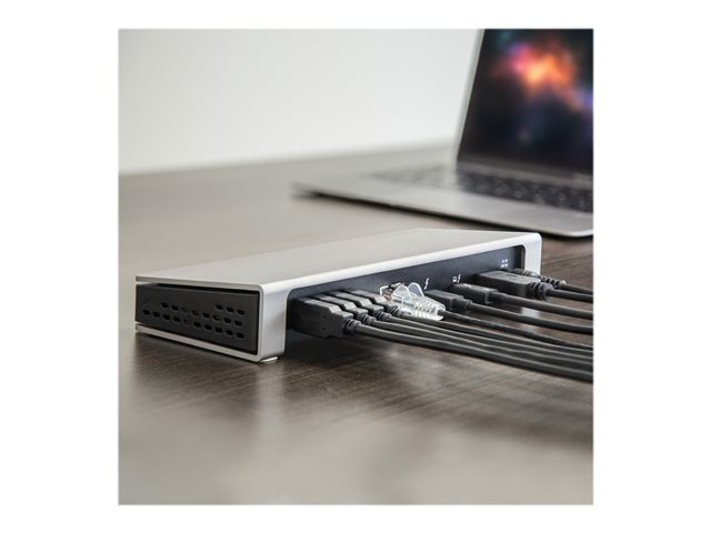 Transformez facilement votre ordinateur portable MacBook Pro ou Windows équipé de Thunderbolt 3 en un poste de travail double 4K avec jusqu'à 40 Gbit/s de débit. La station d'accueil de qualité supérieure TB3 est dotée de six ports USB 3.0, de la technologie Power Delivery 85 W pour charger votre ordinateur portable, ainsi que d'un lecteur de carte SD.
