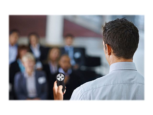 Présentez comme un pro avec la télécommande sans fil. Conçue pour les professionnels, cette télécommande vous permet de vous concentrer sur votre présentation grâce à une connexion sans fil fiable et des commandes naturelles. Grâce sa conception intuitive à quatre boutons, vous pouvez facilement faire défiler vos diapositives PowerPoint ou Keynote, mais aussi masquer votre écran et lancer un diaporama*. Le nano-récepteur sans fil se range facilement dans le compartiment de la batterie lorsqu'il n'est pas utilisé.