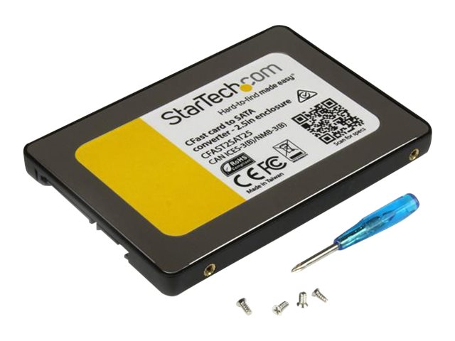 StarTech.com Adaptateur carte CFast vers SATA avec boîtier de 2,5" - Convertisseur carte mémoire CFast - SATA III 6 Gb/s - Contrôleur de stockage - 1 Canal - CFast Card - SATA 6Gb/s - noir, argent - pour P/N: BRACKET125PT, BRACKET125PTP, BRACKET225PT, BRACKET425F CFAST2SAT25