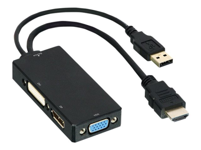 DLH - Adaptateur vidéo - HDMI mâle pour HD-15 (VGA), DVI, DisplayPort femelle - 15 cm - noir - support 1 200 p 60 Hz (VGA), support 1 080 p 60 Hz (DVI), support 4K 30 Hz (DisplayPort)