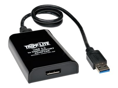 Le câble double moniteur USB 3.0 SuperSpeed vers DisplayPort U344-001-DP de Tripp Lite crée une carte vidéo DisplayPort externe à partir d'un port USB 3.0 disponible sur votre PC ou ordinateur portable. Connectez jusqu'à six moniteurs compatibles DisplayPort, avec une prise en charge des résolutions vidéo jusqu'à 2560 x 1600 (1080p) et un son audio 5.1 surround.