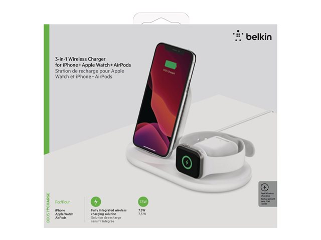 Belkin BOOST CHARGE - Support de chargement sans fil - 7.5 Watt - blanc - pour Apple AirPods; AirPods Pro; iPhone 11, 12, 7, 8, SE, X, XR, XS, XS Max; Watch