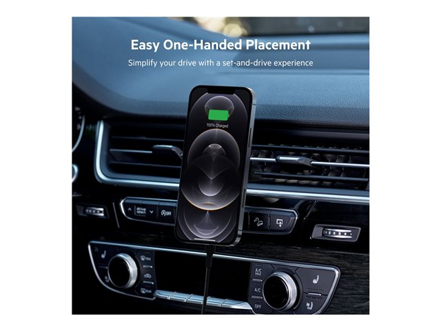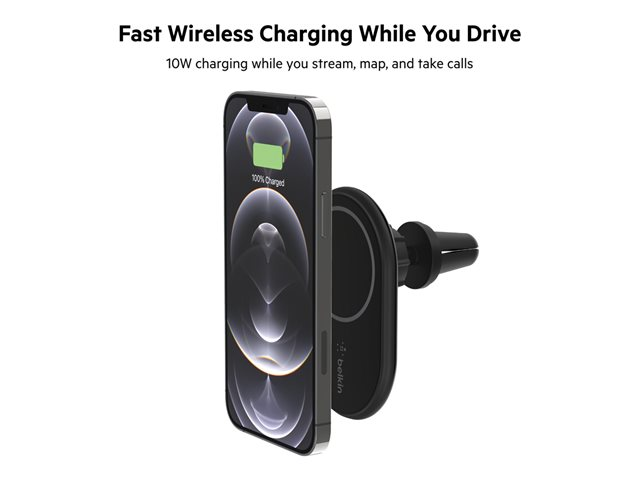 Belkin BOOST CHARGE - Support de chargement sans fil de voiture + adaptateur d'alimentation de voiture - 10 Watt - noir - pour Apple iPhone 12, 12 mini, 12 Pro, 12 Pro Max, 13, 13 mini, 13 Pro, 13 Pro Max