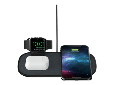 Gardez tous vos accessoires du quotidien chargés avec le socle de charge sans fil 3-en-1 de mophie. Avec une charge sans fil rapide de 7,5 W, obtenir une batterie complète de votre iPhone est plus rapide que jamais. Un endroit dédié pour vos AirPods et votre Apple Watch vous permet de recharger correctement tous vos appareils préférés à partir d'un emplacement central. Vous n'aurez pas besoin de chercher des câbles de charge différents pour chaque accessoire. De plus, l'élégant plateau en verre ajoute une touche de style à n'importe quel bureau ou table.
