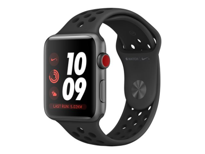 Apple Watch Nike+ Series 3 (GPS + Cellular) - 42 mm - espace gris en aluminium - montre intelligente avec bracelet sport Nike - fluoroélastomère - anthracite/noir - taille de bande 140-210 mm - 16 Go - Wi-Fi, Bluetooth - 4G - 34.9 g