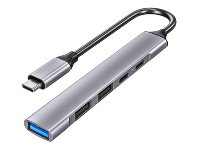 DLH DY-TU4990 - Concentrateur (hub) - 1 x USB-C (passthrough) + 1 x USB-C 3.2 Gen 1 + 1 x USB-A 3.2 Gen 1 + 2 x USB-A 2.0 - de bureau DY-TU4990